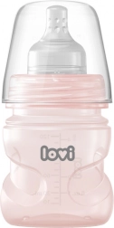 Az ergonomikusan profilozott palackforma megkönnyíti a fogást és a biztonságos testhelyzetben történő etetést. A palack BPA-mentes, újszülött kortól használható és kompatibilis a LOVI mellszívókkal. A széles nyaknak köszönhetően könnyű megtölteni és tisztítani. A csomagban rugalmas tömítőkorongot a tej biztonságos tárolásához, kupakot és speciális kiöntővel ellátott mérőpoharat is talál.