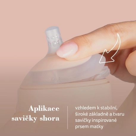 - Természetesség és rugalmasság: A cumi finom pereme az anyai mell színét és lágyságát idézi.