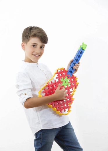 A készlet 200 tartós műanyag elemet tartalmaz 10 telt színben. A csomagban ötletadó útmutató is található kezdőktől a haladó modellekig, így a gyerekek fokozatosan fejleszthetik készségeiket. Kiváló egyéni és csoportos játékhoz, tanulás játék közben.