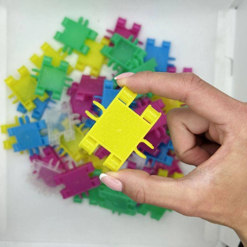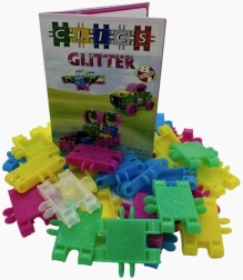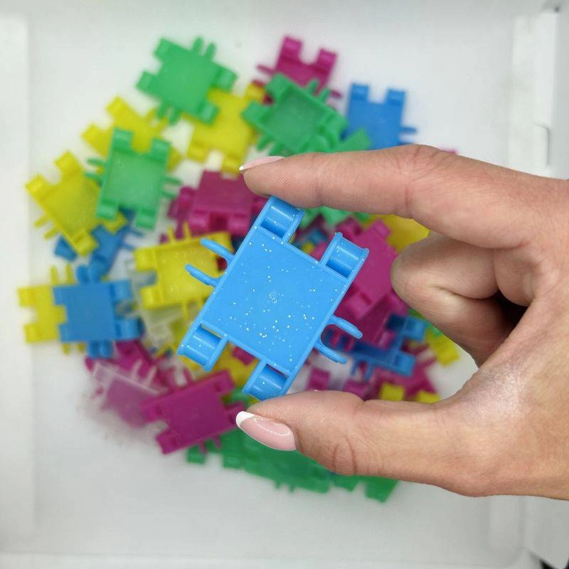A glitter elemek fényes hatása WOW élményt ad minden építménynek, és újabb alkotásra motiválja a gyerekeket.