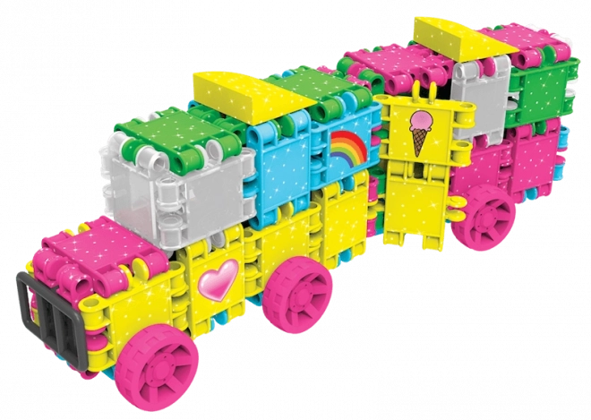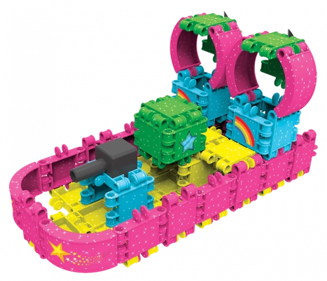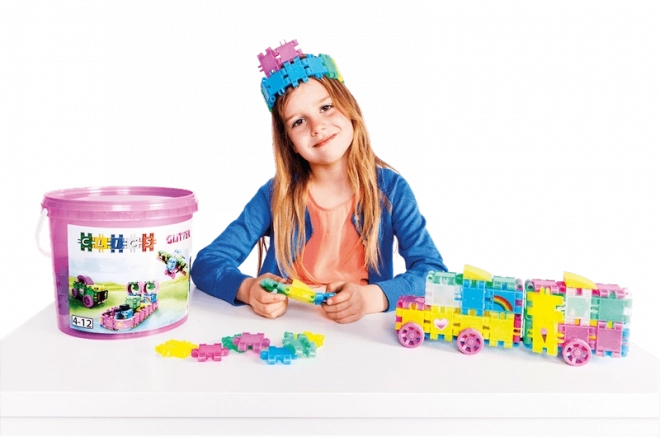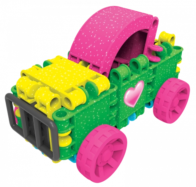 A CLICS GLITTER csillogó kiadása élénk színeket és könnyű összekapcsolást kínál, ami azonnal leköti a gyerekeket. A 175 elemből aranyos modellek készíthetők, mint például kutyus, kézitáska, repülő, autócska vagy fantáziadús figurák. A tartós, összekattintható kapcsolatok tartják a formát, ugyanakkor végtelen átépítést tesznek lehetővé.