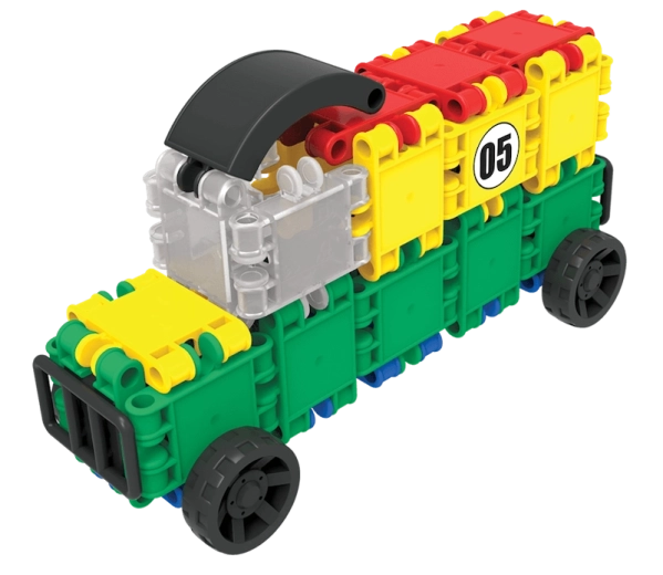 Építsen járműveket, állatokat és fantáziagépeket. A formák és színek széles skálája támogatja a kreatív játékot és az építési variációkat.