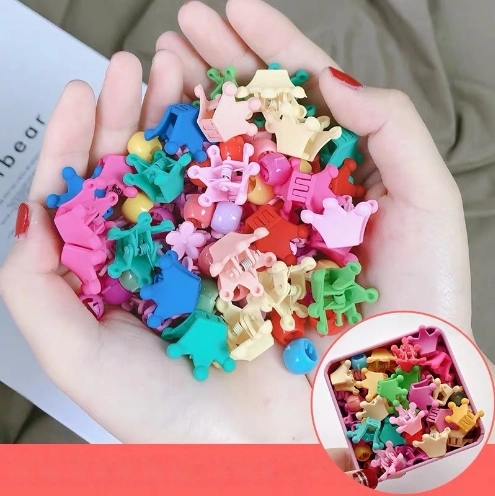 Színes, koronás formájú hajcsatok, amelyek gyönyörű díszei lehetnek a hajadnak. A hajcsatok ideálisak a rakoncátlan tincsek, a félresuhanó frufru rögzítésére vagy az elkóborló hajszálak összefogására copfban.