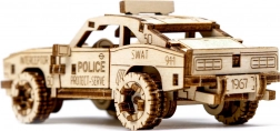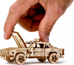 Az összeszerelés ragasztó nélkül történik, az elemek pontosan egymásba illenek. Az eredmény egy tartós miniatűr rendőrautó, amely remekül mutat a polcon vagy az íróasztalon. A WOODEN CITY márka az ökológiára is figyel – a termék műanyag csomagolás nélkül érkezik.