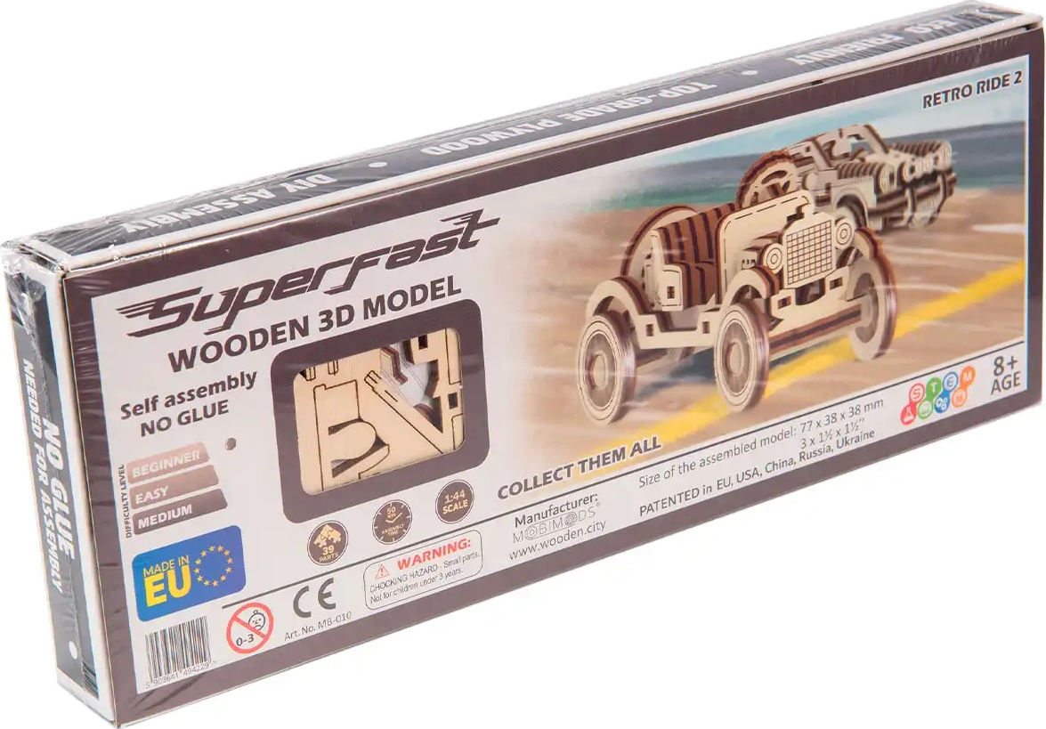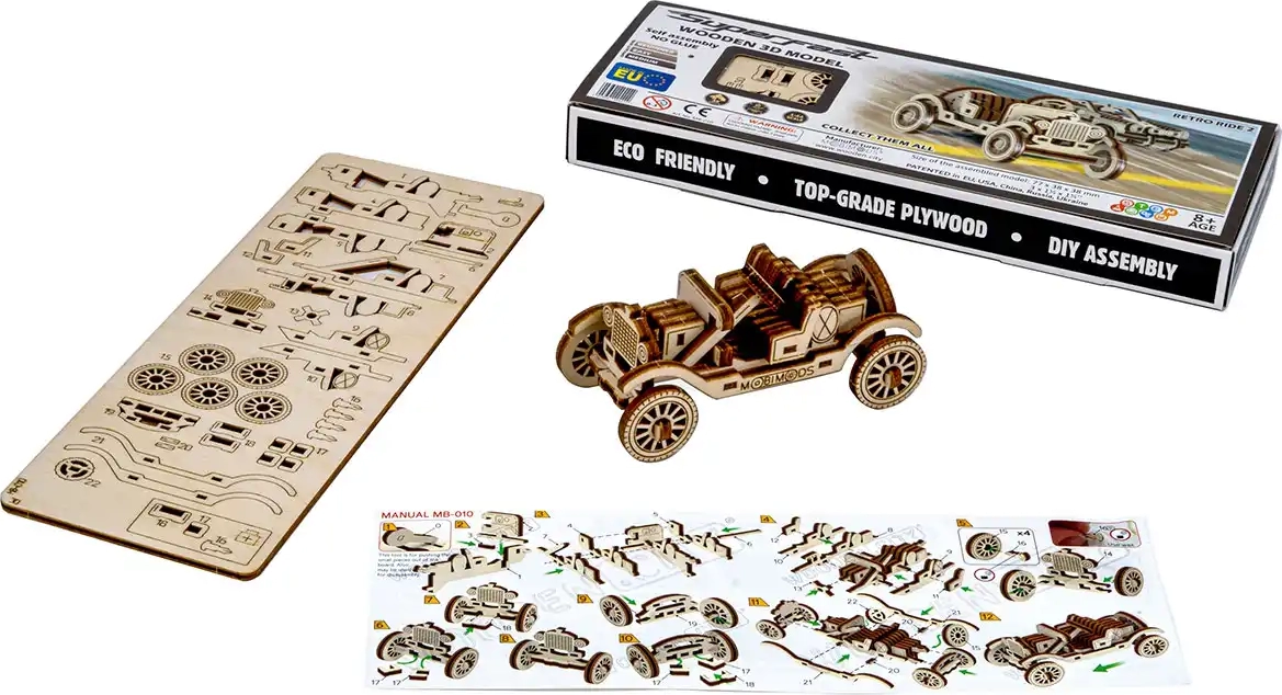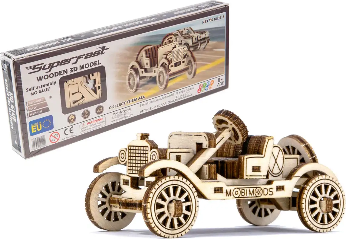A Retro Ride 2 modell könnyen összeállítható, ezért ideális kezdőknek – remek belépő egy új hobbiba –, és a fa modellek építésében jártasabbaknak is.