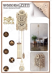A WOODEN CITY Fa 3D puzzle Királyi óra kiváló mestermű, fejlett részletekkel és elegáns vonalakkal. Ideális ajándék a szépség és a meglepetések kedvelőinek. A modell rokokó stílus ihlette, és részletes, kifaragott, összefonódó mintákat tartalmaz. A Királyi óra úgy készült, hogy valódi időmérőként működjön, állítható inga-periódussal, amely a behelyezett érmék mennyiségétől függ.