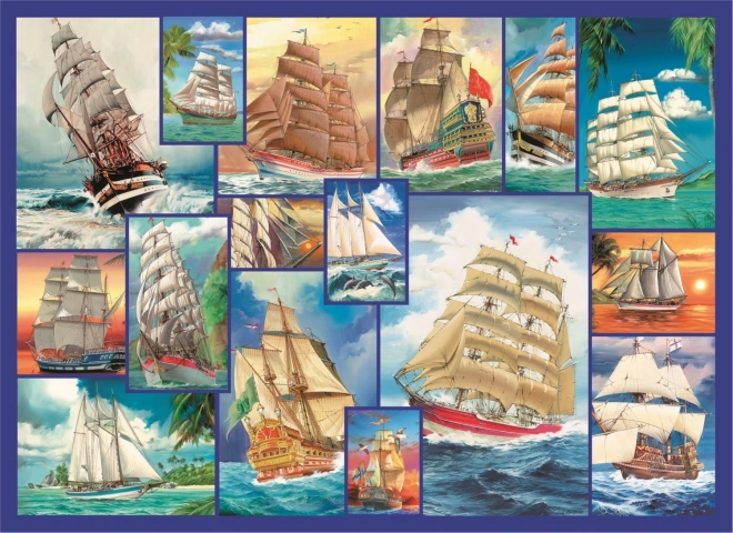 A puzzle-t kirakhatja mind a kép, mind a forma alapján, egyik oldalon vitorlásokat, a másikon ismétlődő mintát ábrázolva.