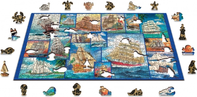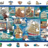 A WOODEN CITY márka csodálatos fa puzzle játéka szórakozást nyújt a különleges formájú daraboknak köszönhetően magasabb nehézségi szinten. Minden darab precízen lézerezett, hogy garantálja a tökéletes felületkezelést szilánkok nélkül. A rendkívül eredeti puzzle 505 egyedien formázott darabot tartalmaz, melyek elkalauzolnak a vitorlások és tengeri kalandok világába!