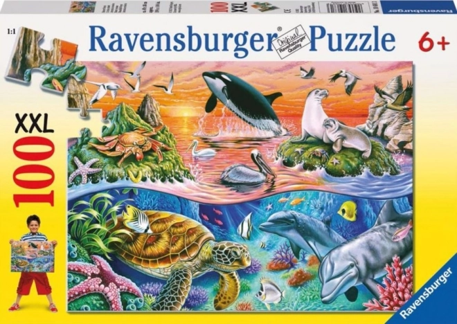 Fedezd fel a tenger alatti világ szépségét a Gyönyörű óceán XXL puzzle segítségével a neves Ravensburger márkától. Ez a 100 darabból álló kirakós csodás vizuális élményt nyújt, és tökéletes tevékenység egy esős délutánra vagy kreatív pihenőre.