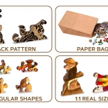 A különböző alakú kirakódarabokból álló puzzle összerakása nehezebb, és nagyobb kihívást jelent, mint a klasszikus puzzle. A puzzle ráadásul kétoldalas, így rakhatja a képes oldal (előlap) szerint, vagy a forma alapján (hátoldal mintával). A WOODEN CITY márka az egyedi puzzle-koncepció mellett az ökológiára is figyel, ezért ezeknél a termékeknél nem talál műanyag csomagolást. Egyedien formázott darabokkal, amelyek a témának megfelelően ismert épületeket, tárgyakat vagy állatokat ábrázolnak. Magasabb nehézségi szint kevesebb darabszám mellett – a különböző formájú darabokkal való kirakás igényesebb.