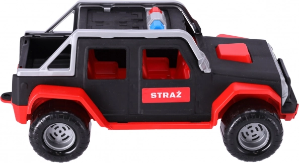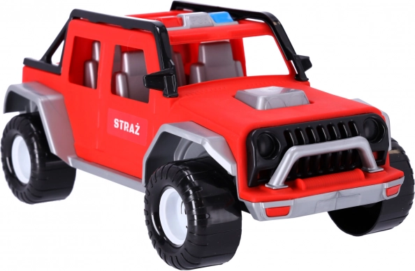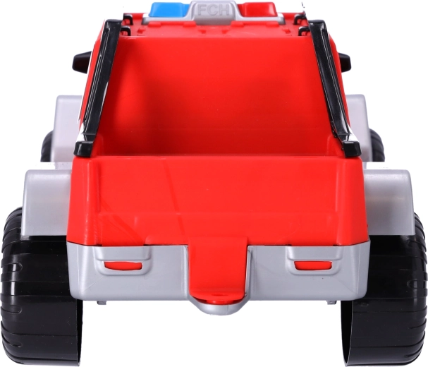 Az autó kiegészíti a bevetési járművek gyűjteményét, és tetszeni fog a kis tűzoltóknak. A játék 3 évnél idősebb gyermekek számára alkalmas. Az autó összkerék-meghajtással van felszerelve, elég, ha a gyermek hátrahúzza és elengedi, és az autó előre fog menni.