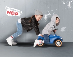 Ikonikus lábbal hajtós autó a legkisebbeknek ergonomikus kialakítással, csendes kerekekkel, kormányozható első tengellyel és dudával ellátott biztonságos kormánnyal a kényelmes és biztonságos guruláshoz. Alacsony súlypontjának köszönhetően stabil, első vontatószemmel és hátsó utánfutó-csatlakozóval rendelkezik, és több lábteret biztosít, mint a Classic verzió. Németországban készült UV-álló anyagokból, LGA/TÜV által tesztelve.