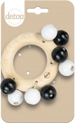 Könnyű fa csörgő fekete-fehér golyócskákkal zsinóron, támogatja a finommotoros készségek fejlődését, és már 6 hónapos kortól leköti a babák figyelmét. Biztonságos, megfelel az EU-s szabványoknak, 7 cm átmérőjű, és Csehországban készült környezetbarát papírkártyán.