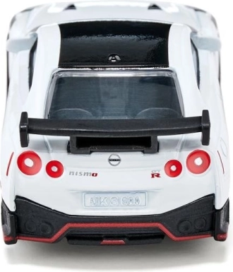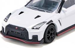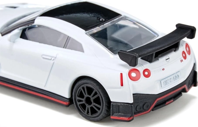 A Nissan GT-R Nismo egy sportos szupersportkocsi mindazoknak, akik kedvelik a lenyűgöző stílust és teljesítményt. A Nissan csúcsmodellje, több mint 600 lóerős teljesítményével, letisztult aerodinamikát és izgalmakat ígér. A klasszikus fehér karosszériának, a sportfelniknek gumírozott abroncsokkal, a hátsó szárnynak és a kifinomult dizájnelemeknek – mint például a piros peremvonal – köszönhetően ez az autó nemcsak az utcát, hanem a gyerekszoba padlóját is versenypályává változtatja.