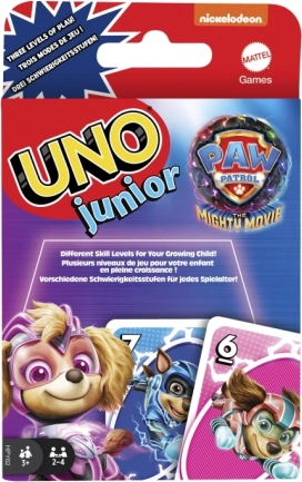 A UNO Junior gyerek kártyajáték a Mancs őrjárat hőseivel három nehézségi szinten kínál szórakoztató színek és számok párosítását, a készségek fejlődéséért. Ideális 3 éves kortól, nagy, áttekinthető kártyákkal és egyszerű szabályokkal. Ne felejts el az utolsó kártyánál felkiáltani: UNO!