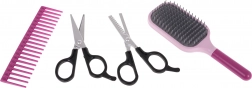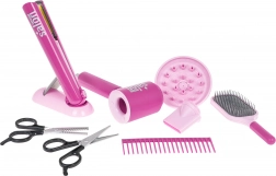 Interaktív, jól felszerelt fodrászkészlet cserélhető fejekkel ellátott hajszárítóval és elemes hajkiegyenesítővel, 3 éves kortól ajánlott. A szett a fodrász munkájához nélkülözhetetlen eszközök széles választékát tartalmazza, beleértve a hajszárítót, a hajvasalót, az ollókat, a fésűket és további kiegészítőket. A hajszárító szárítóhangot ad ki és levegőt fúj. Kétfokozatú légáram-szabályozással rendelkezik, és szárítás közben valósághű hangokat ad. A hajvasaló fény- és hanghatásokkal kíséri a hajegyenesítést. A hajszárító 3 x AAA elemmel működik (nem tartozék), a hajvasaló 2 x AAA elemmel működik (nem tartozék). A készlet funkciói: - hajszárító cserélhető feltétekkel (diffúzor és koncentrátor), - a hajszárító levegőt fúj, - a hajszárító kétfokozatú légáram-beállítással rendelkezik, - a hajszárító szárítás közben hangot ad, - a hajvasalón csúszka található a nyitáshoz és záráshoz, - a hajvasaló világít, - a hajvasaló a hajegyenesítésre jellemző hangot ad, - praktikus tartó a hajszárítóhoz. |