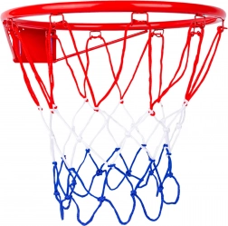 Minőségi, trikolór háló, amely könnyen rögzíthető a gyűrű kampóira, és lehetővé teszi a labda sima áthaladását gubancolódás nélkül.