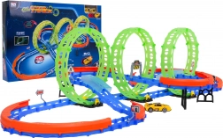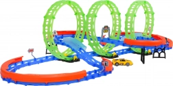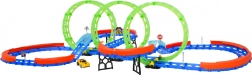 Világító versenypálya 3+ éves gyerekeknek 3 darab 360°-os hurokkal és LED autóval, 74 elem