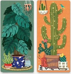Élvezd a kétfős, izgalmas kirakózást a Puzzle Duel – szobanövények sorozattal. Válassz a kaktuszok és a trópusi növények motívumai közül, versenyezz a utolsó, kétoldalas kirakódarabért, és élvezd a szórakozást műanyag csomagolás nélkül. A csomag része egy fa állvány az utolsó darabhoz és két színes mintakép a könnyebb kirakáshoz.