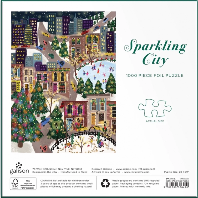 Fedezze fel az ünnepi városi jelenetet tele színekkel, fényekkel és korcsolyázókkal. A kirakó fémfóliákkal díszített, válogatott részei egyedülálló csillogó hatást keltenek, amely különböző fényviszonyoknál még jobban érvényesül. Ideális ajándék kirakórajongóknak, illetve téli otthoni dekorációnak.