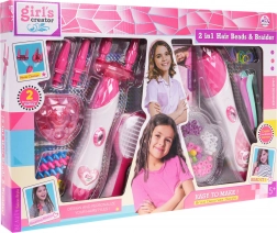 - hajfonó gép, - 2 cserélhető fej a háromtincses fonáshoz és a kéttincses csavarhoz, .- hajgyöngy-applikátor, .- hajkefe, .- gyöngytartó doboz, .- 76 db színes gyöngy, .- 2 x hajcsat, .- 5 hajtű, .- 2 x használati útmutató, külön-külön mindkét eszközhöz, .- 20 x hajgumi. . |