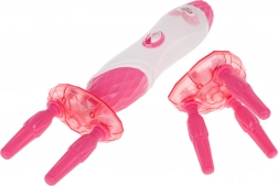 A gyönyörűen felszerelt, 2 az 1-ben fonók és gyöngyapplikátor készlet 5 éves kortól ajánlott. A készlet két hajformázó eszközt tartalmaz. Találsz benne hajfonó gépet és hajgyöngy-applikátort, továbbá hajkefét, gyöngyöket, csatokat és hajgumikat. A hajfonó gép 2 db AA 1,5 V elemmel működik (nem tartozék), a gyöngyapplikátor nem igényel elemet. Az eszközök használata rendkívül egyszerű. Fonáshoz egyszerűen helyezz be 2 hajtincset, vagy háromtincses fonathoz 3 tincset a csipeszek nyílásaiba, majd told felfelé a gyémánt alakú gombot. Hajgyöngy felhelyezéséhez helyezd a gyöngyöt az applikátorra, tedd a hajtincset az applikátor kampójába, majd told felfelé a készülék közepén lévő gyémánt alakú gombot. Tartsd meg a gyöngyöt és húzd ki az applikátort. Kész! |