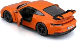 A hű arányok és a karosszéria, a kerekek és a hátsó légterelő precíz részletei kiemelik a PORSCHE 911 GT3 modell sportos karakterét.