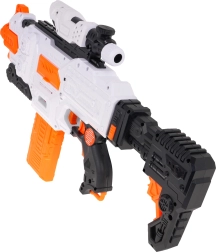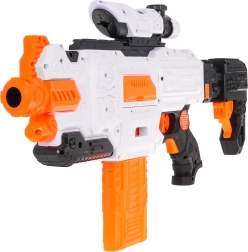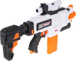 Ez a félautomata pisztoly nagyszerű kiegészítője bármilyen kreatív játéknak. Könnyű használat: helyezze be a hablövedékeket, célozzon az állítható keresővel és húzza meg a ravaszt. Legyen hőse bármelyik akciófilm jelenetnek!