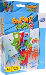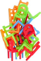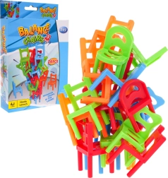 A játék 24 kis székből áll, 4 színben (kék, narancs, zöld, piros) és 6 különböző formában, ami széles variációs lehetőségeket biztosít az építéshez és stratégiához. Építse meg a legmagasabb tornyot, és élvezze a nevetés és feszültséggel teli pillanatokat.