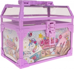 Kozmetikai készlet hercegnőknek széles választékát tartalmazza a biztonságos kozmetikai termékeknek egy praktikus egyszarvús kincsesládában. Ez a láda tartalmaz egy fogantyút is a könnyű hordozhatóság érdekében, amely lehetővé teszi a gyermekek számára, hogy kedvenc kozmetikai darabjaikat bárhová magukkal vigyék.