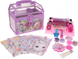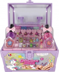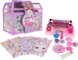 Rendelkezik különféle színű körömlakkokkal, ajakfényekkel és szemhéjfestékekkel. Az összes egy dekoratív, egyszarvú mintás dobozban található.