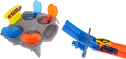 Lebilincselő pályakészlet, amely lehetővé teszi, hogy egyszerre két pályán versenyezzenek, így szórakozást és kihívást nyújt minden kis versenyzőnek.