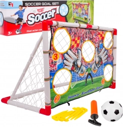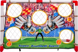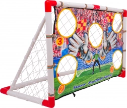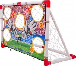 Futballkapu céltáblával 3 éves kortól gyermekek számára, kiváló eszköz a játék készségek fejlesztésére. A kapu pontokkal jelölt nyílásokkal rendelkezik, amelyek lehetővé teszik a pontos célzást és a pontok gyűjtését találat esetén. A céltábla gyorsan és könnyen eltávolítható.