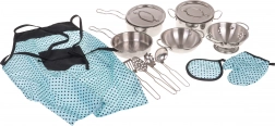 Fejlessze gyermeke kreativitását és képzelőerejét ezzel a fém konyhai készlettel 3 éves kortól. Tartalmaz nagy teherbírású fém edényeket és praktikus kiegészítőket, beleértve a színes kötényt is.
