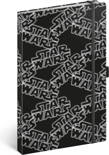 A fekete nyomat ismétlődő STAR WARS logóval ikonikus megjelenést kölcsönöz a jegyzetfüzetnek, amely irodában és iskolában is kitűnik.