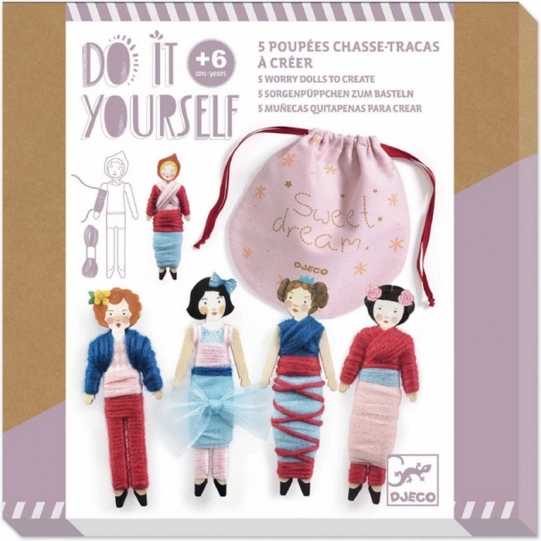 Csodás készlet lányoknak, akik szeretik a babákat. A készlet segítségével a kislányok 5 gyönyörű babát készíthetnek, és vászonzsákban bárhová magukkal vihetik őket. Baba mérete: kb. 10 × 3,5 cm. 6 éves kortól ajánlott.