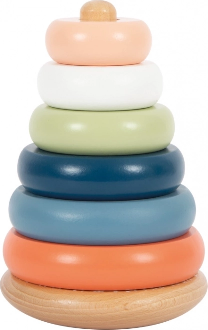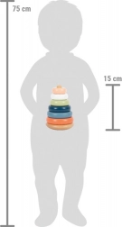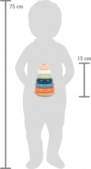 Ez az elegáns, finom sarkvidéki árnyalatokban pompázó rakosgató torony már 12 hónapos kortól felkelti a gyerekek érdeklődését. A hat színes gyűrűt a méret szerint fűzik a középső pálcára, miközben fejlesztik a logikát, a türelmet és a mozdulatok pontosságát. A fa sima felülete kellemes tapintási élményt nyújt, a minőségi kivitelezés pedig tartósságot biztosít.