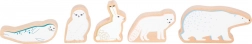 A jegesmedve, a hóbagoly, a sarki róka, a fóka és a nyúl figurái történetmesélésre inspirálnak, és támogatják a fantáziadús játékot.