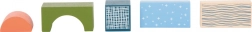 A natúr fa és a lágy színek kombinációja, a sokféle forma és építőelem fejleszti a koordinációt és a térbeli észlelést.