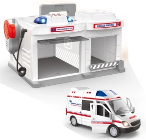 A mentőautó játékkészlet világítási és hanghatásokkal tökéletes szórakozást nyújt a gyerekeknek. A hordozható készlet praktikus fogantyúval rendelkezik, így bármikor és bárhol játszhatsz vele. Nyomd meg az autó tetején lévő gombot, hogy fény- és hanghatásokkal találkozz. A bal oldali gomb megnyomásával beszélgetés kezdődik, és a beépített hangszóró segítségével hallgathatod.