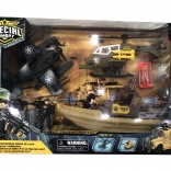 Ez a nagy katonai készlet izgalmakat hoz a földre, a tengerre és a levegőbe! A hajóval, helikopterrel és kétfedelű repülőgéppel a gyermekek izgalmas katonai forgatókönyveket alkothatnak.