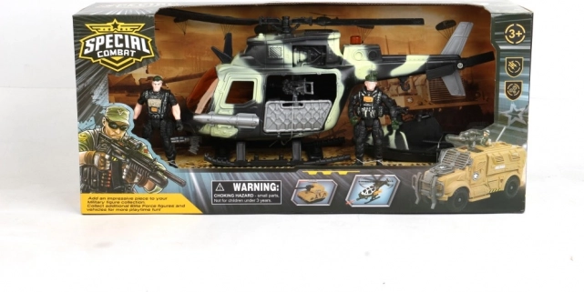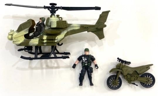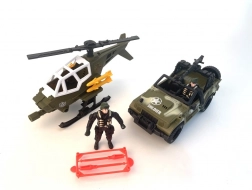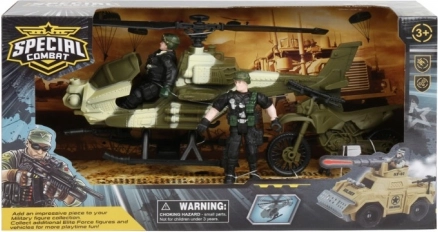 Ez a speciális harci készlet végtelen imaginatív játék lehetőségeket kínál a gyerekek számára. Választhatnak helikopter vagy terepjáró közül, minden készlet tartalmaz akciófigurát és további játék kiegészítőket valósághű katonai forgatókönyvekhez.