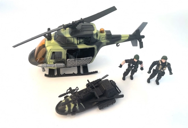 Katonai helikopter tárolóval ideális kiegészítő minden kis katonának. A csomag tartalmaz két figurát, amelyek fokozzák a játékélményt.