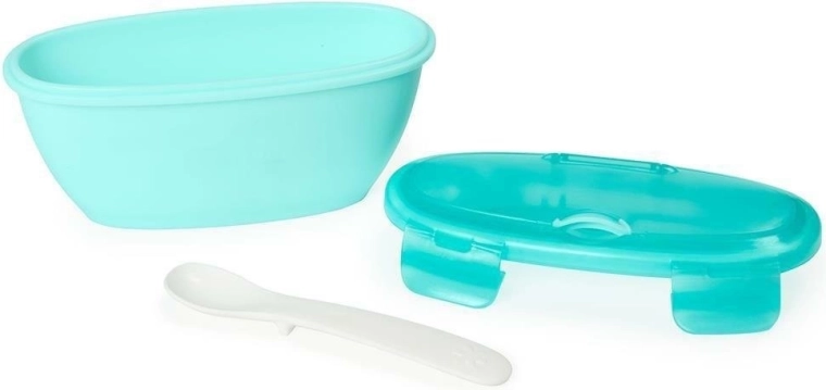 Ez a praktikus gyermek étkészlet a Skip Hop márkától kényelmet és biztonságot nyújt az útközbeni etetéshez. A 240 ml űrtartalmú tálka metrikus és imperiális mércével is rendelkezik, ami segít a pontos adagolásban. Az anyag fagyasztóban, mikrohullámú sütőben (fedél nélkül) és mosogatógépben (csak a felső kosárban) is használható, így nagyfokú rugalmasságot kínál az ételek tárolásához és melegítéséhez. A termék 3 hónapos kortól ajánlott, BPA- és ftalátmentes.