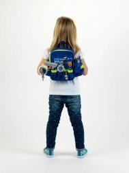 A BEN & SAM rendőrségi hátizsák ideális szerepjátékhoz, a képzelet és a szociális készségek fejlesztéséhez. A Klein márkára jellemző minőségi kidolgozás hosszú élettartamot, az állítható pántok pedig kényelmes viselést biztosítanak. A fényvisszaverő csíkok növelik a gyermek láthatóságát kültéri játék közben.