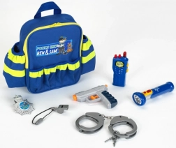 Fedezze fel a szórakoztató BEN & SAM rendőrségi hátizsákot a neves német Klein márkától – komplett készlet kis törvényőröknek. Tartalmaz hátizsákot fényvisszaverő elemekkel, működő zseblámpát, rövidhullámú rádió adóvevőt (imitáció), sípot, rendőrjelvényt, műanyag bilincset és vízipisztolyt. A több zsebnek és a strapabíró kialakításnak köszönhetően a játékok gyorsan, áttekinthetően és biztonságosan pakolhatók.