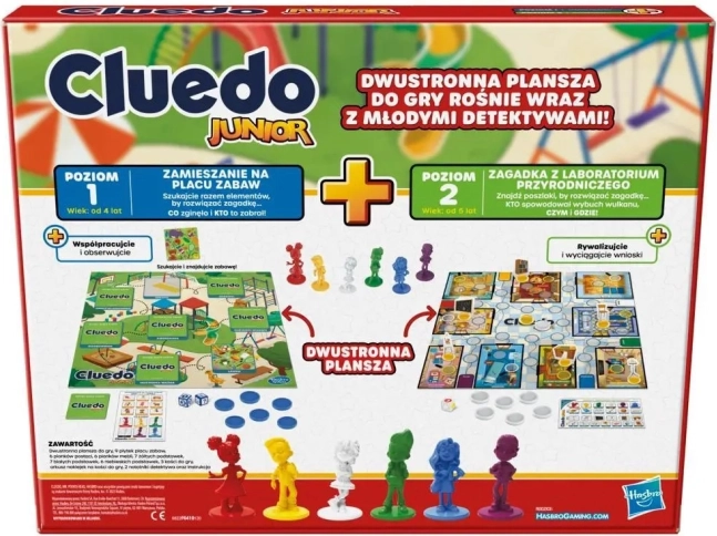 Még a legkisebb gyerekek is detektívekké válhatnak, és izgalmas, rejtélyekkel és fejtörőkkel teli kalandra indulhatnak! A Cluedo Junior egy olyan játék, amely a kétoldalas játéktáblának köszönhetően együtt nő a gyermekeddel – az első szinten a gyerekek közösen oldanak meg egy rejtvényt a játszótéren, és kiderítik, ki rejtett egy rossz tárgyat a hátizsákba. Mindenki együtt dolgozik, vizsgálja a játéktáblát és nyomokat keres, hogy a végén megnevezzék a megfelelő személyt. Amikor a játékosok készen állnak egy nagyobb kihívásra, belépnek a 2. szintre, ahol egy tudományos laboratóriumot derítenek fel, és megpróbálják kideríteni, ki indította be a vulkánt, milyen anyagot tett bele, és hol kellett volna tartózkodnia, amikor az esemény történt. 2–6 játékos számára, nagyszerű ajándék és remek ötlet az értékes idő családdal és barátokkal való eltöltéséhez!