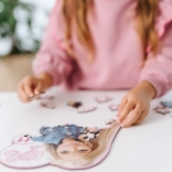 A fa puzzle Barbie ideális választás kis és kezdő kirakózóknak, akik valami többre vágynak, mint a hagyományos kirakás. A készlet tartalma: