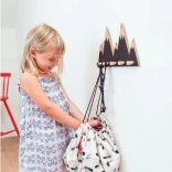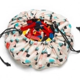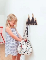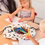 A játszófelületről pillanatok alatt tárolóvá alakul – húzd meg a zsinórokat, és kész. Ideális kockáknak, kisautóknak és plüssöknek.
