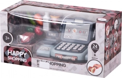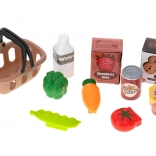 A készlet része egy színes bevásárlókosár, és az összes termék vonalkóddal rendelkezik, amelyet be lehet szkennelni. A pénztárgép elemmel működik, így a gyerekek bárhol játszhatnak.